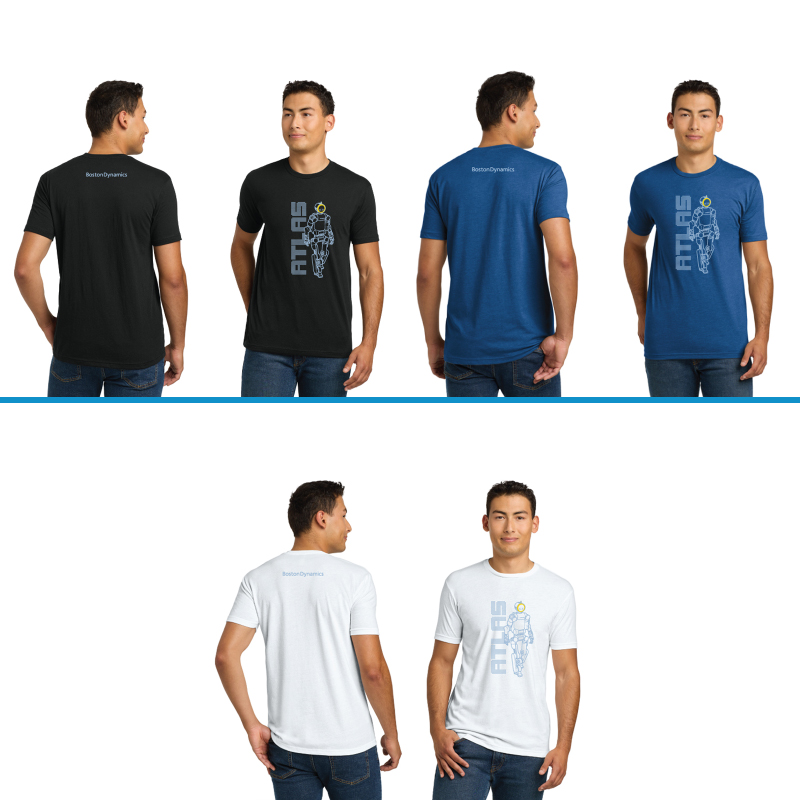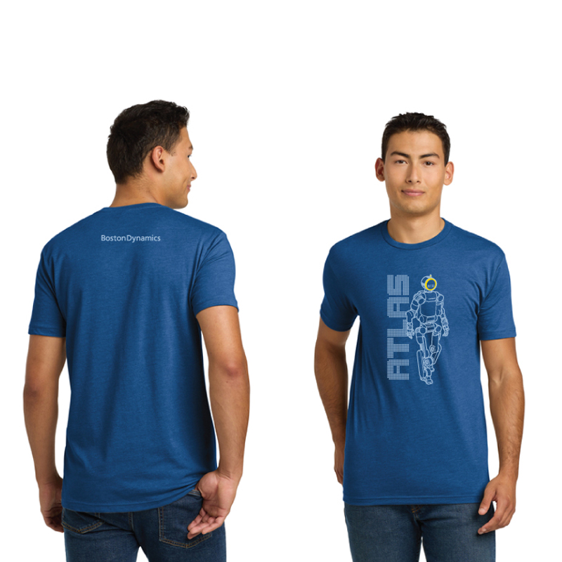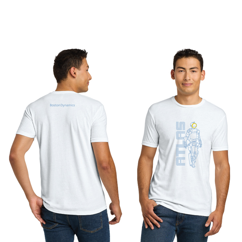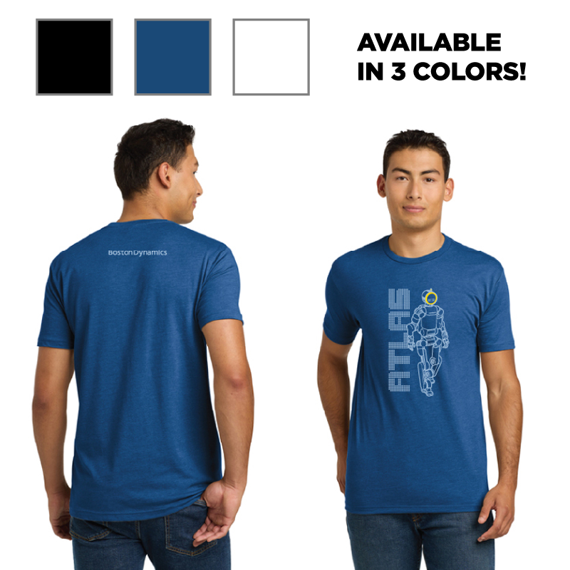 This Atlas t-shirt commemorates the announcement of the product version of our Atlas robot, built to power the new industrial revolution. Printed full front with the Boston Dynamics wordmark on the upper back, This tee is a Next Level brand 4.3-ounce, cotton/poly/poly triblend, is soft and breathable with a comfortable fit.