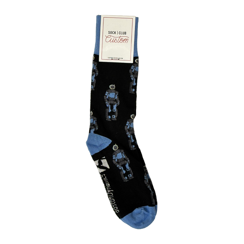 Each pair of socks is adorned with vibrant, images of the most iconic Boston Dynamics robots.
